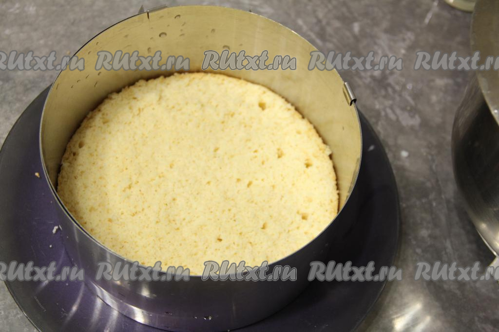 Выложить первый корж в форму и пропитать его молоком.