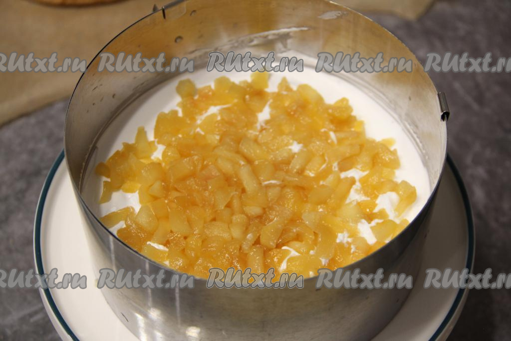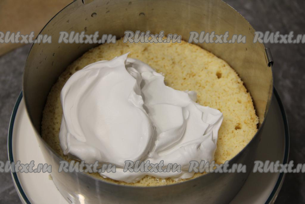 Затем выложить слой взбитых сливок и разровнять.