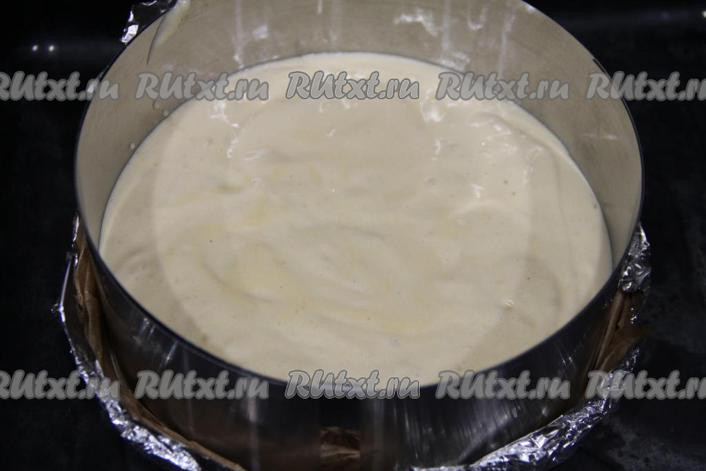 Выложить тесто в форму для выпечки (я взяла форму диаметром 20 сантиметров).