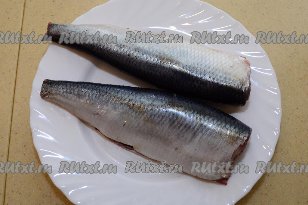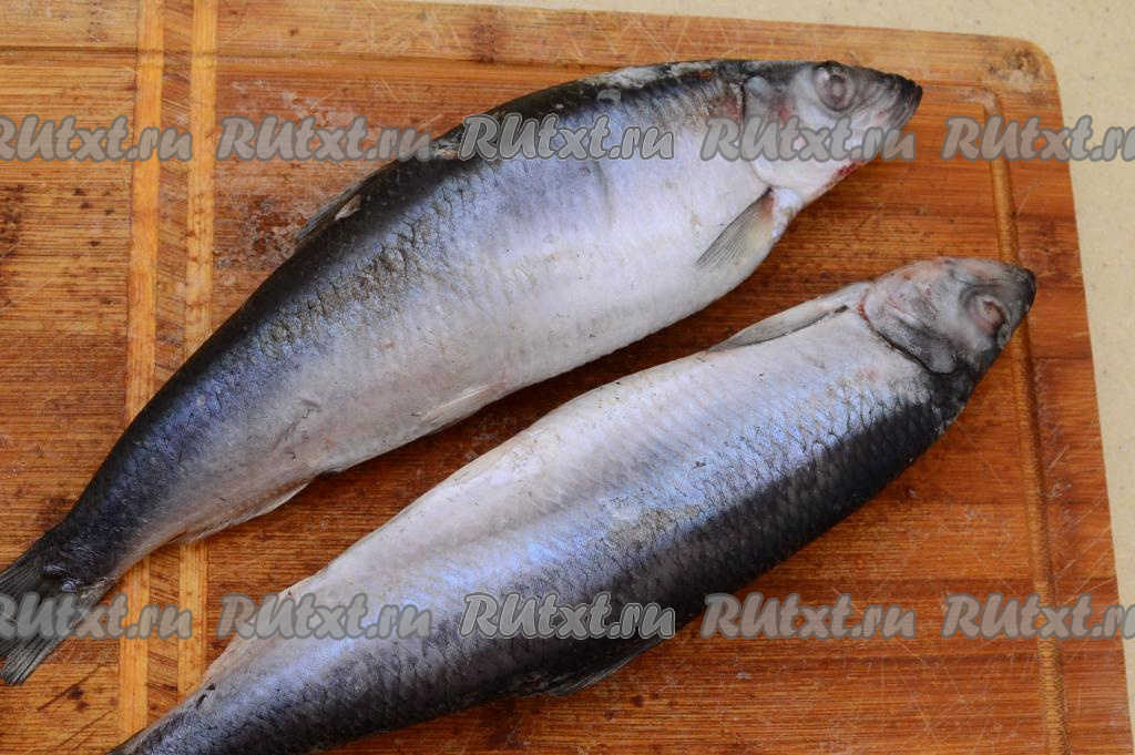 Подготовить рыбу. У меня была замороженная селёдка, перед засаливанием её нужно полностью разморозить (я обычно размораживаю на нижней полке холодильника или при комнатной температуре).