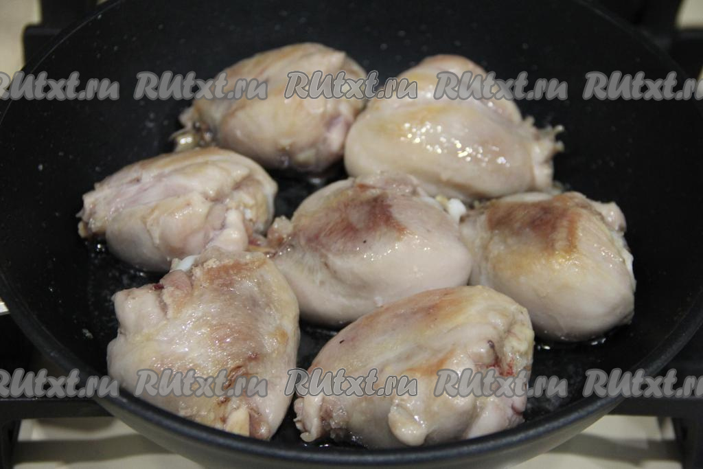 Обжарить ножки на достаточно сильном огне с двух сторон до золотистого цвета. Тут главное, чтобы образовалась румяная корочка, а доводить куриное мясо до готовности мы будем в молоке.