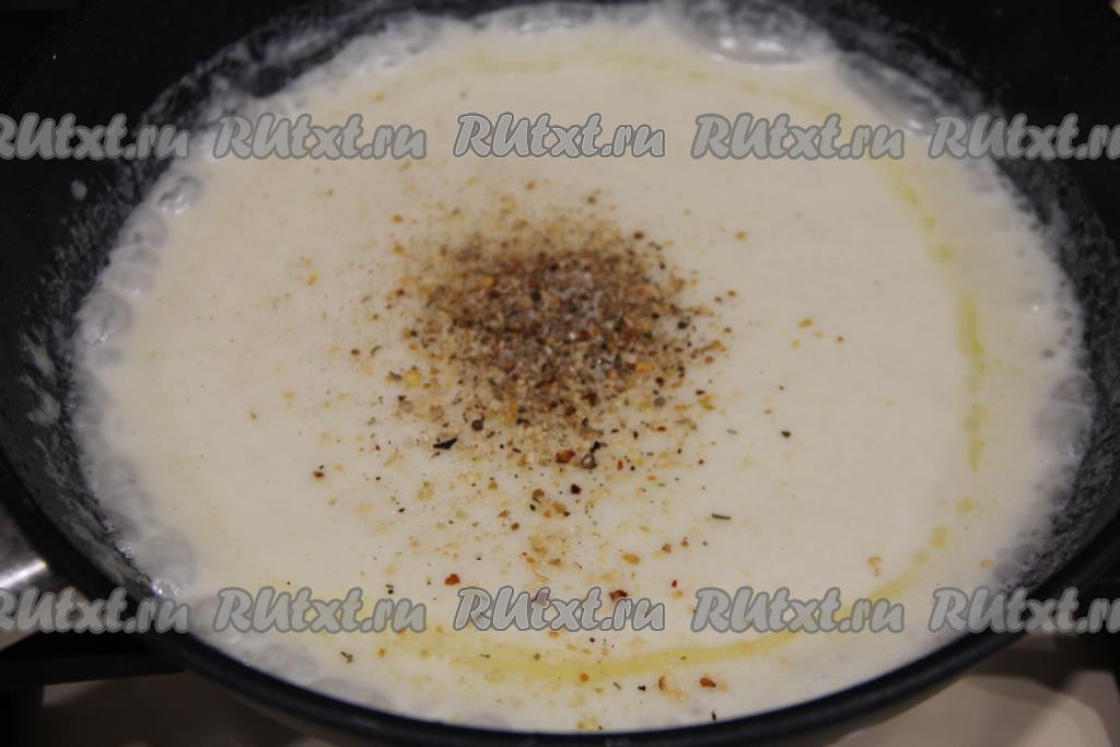 Соус довести до кипения. Добавить соль и специи по вкусу, перемешать.