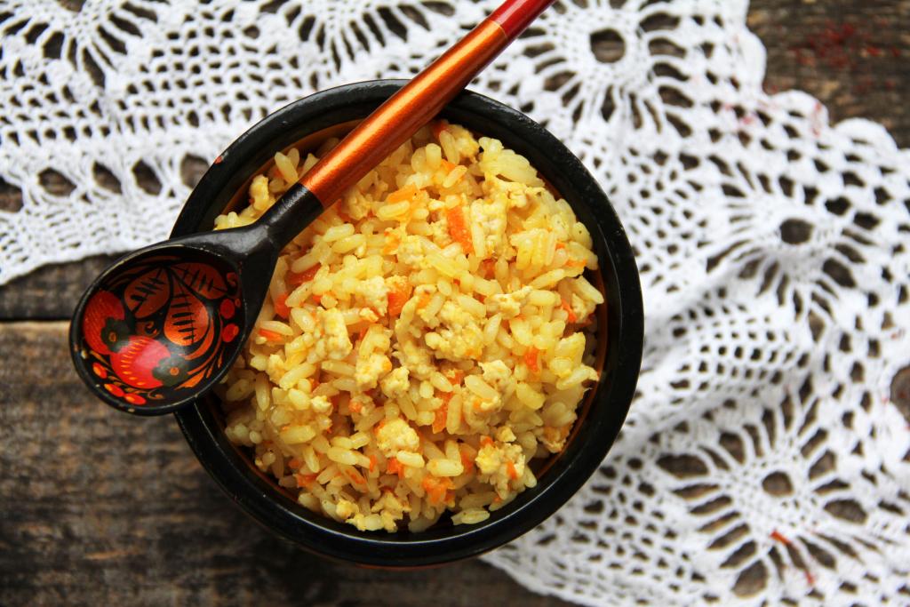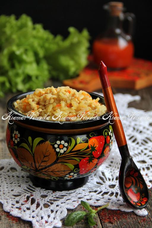 Сытную, вкусную рисовую кашу с фаршем подать к столу в горячем виде.