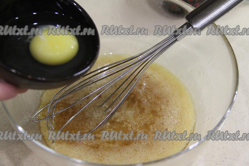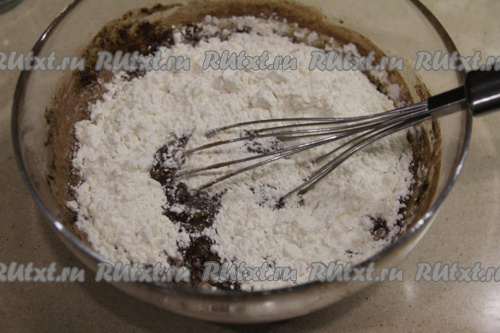 Затем частями всыпать муку, тщательно перемешивая тесто венчиком.