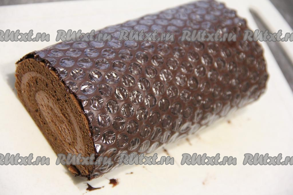 Сразу накрыть рулет шоколадом (плёнка будет наружу) и поставить его в холодильник на 10-15 минут.