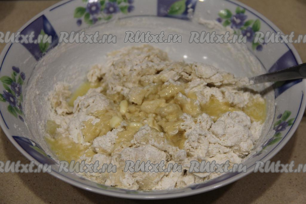 Растопить сливочное масло, дать ему немного остыть и добавить в тесто.