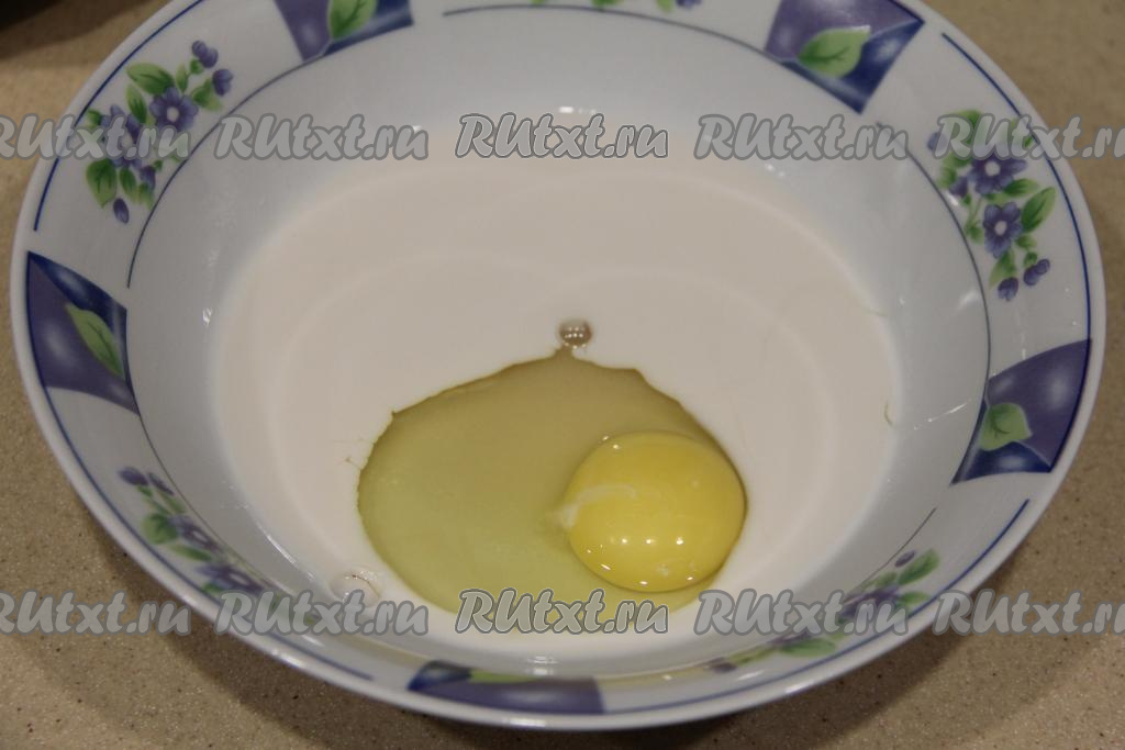 Замесим дрожжевое тесто для лепёшки, для этого прежде всего нужно подогреть молоко до 38-40 градусов, после этого перелить его в миску, всыпать в него сахар и дрожжи, перемешать и оставить минут на 10. Затем в получившуюся дрожжевую смесь добавить яйцо и перемешать.