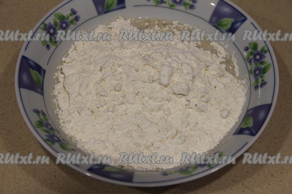 После этого всыпать муку и соль, перемешать тесто ложкой.