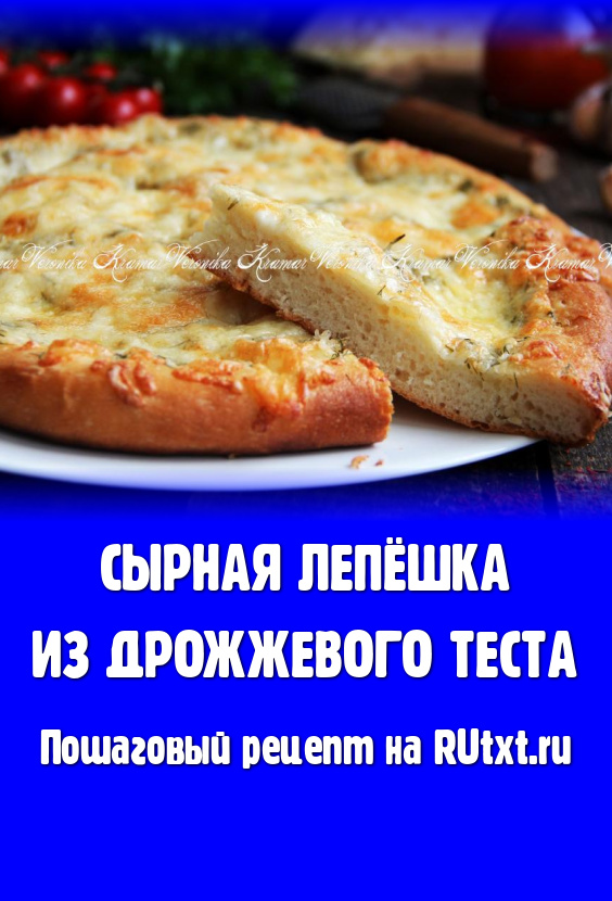 Воздушную, аппетитную сырную лепёшку, испечённую из дрожжевого теста, достать из духовки и подать к столу в тёплом виде.