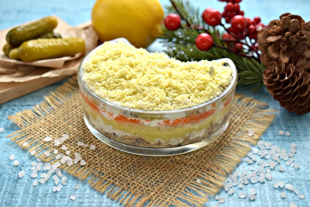 Салат "Мимоза", пожалуй, является одним из самых узнаваемых блюд на праздничном столе. Классическими ингредиентами для "Мимозы" являются рыбные консервы, картошка, морковка и куриные яйца, обязательно разделённые на белки и желтки. В этот раз в состав этого салата я добавила солёные огурчики, которые придали блюду интересную пикантность. Салат "Мимоза" с солёными огурцами получился вкусным, сочным и аппетитным, советую и вам его попробовать!