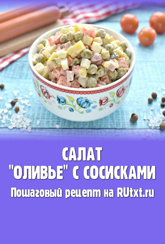 Обычно в салат "Оливье" я добавляю варёную колбасу. Однако в этот раз предлагаю вместо колбаски добавить в этот салат сосиски. "Оливье" с сосисками получается, как и классический вариант, очень вкусным и сытным. Чтобы на столе "Оливье" выглядел аппетитно, стараемся нарезать ингредиенты на кубики одинакового размера (ориентируясь на размер зелёного консервированного горошка).