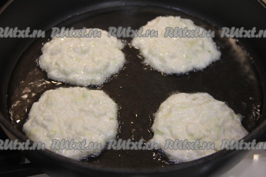 На сковороду, очень хорошо разогретую с растительным маслом, выкладывать по 1 столовой ложке капустного теста в форме круглых оладий.