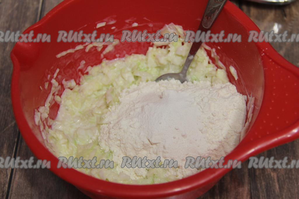Перемешать тесто ложкой. Тесто для капустных оладий получится не густым, пышным и воздушным.
