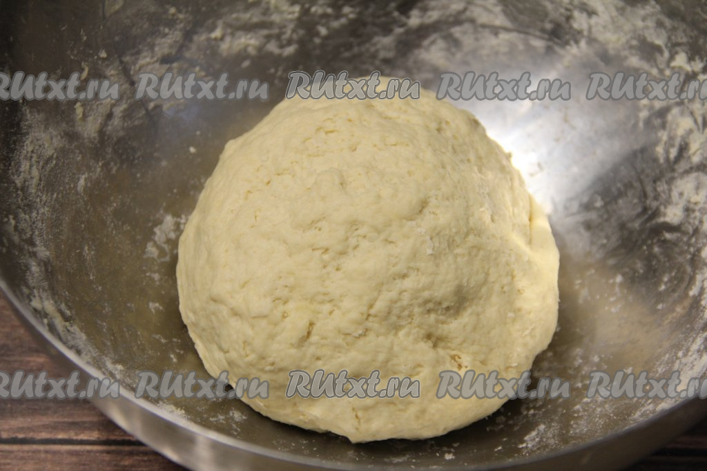 Замесить нежное, мягкое и пластичное тесто. Если тесто сильно подлипает к рукам, припылите его мукой. Поместить тесто в пакет и убрать в холодильник на час.