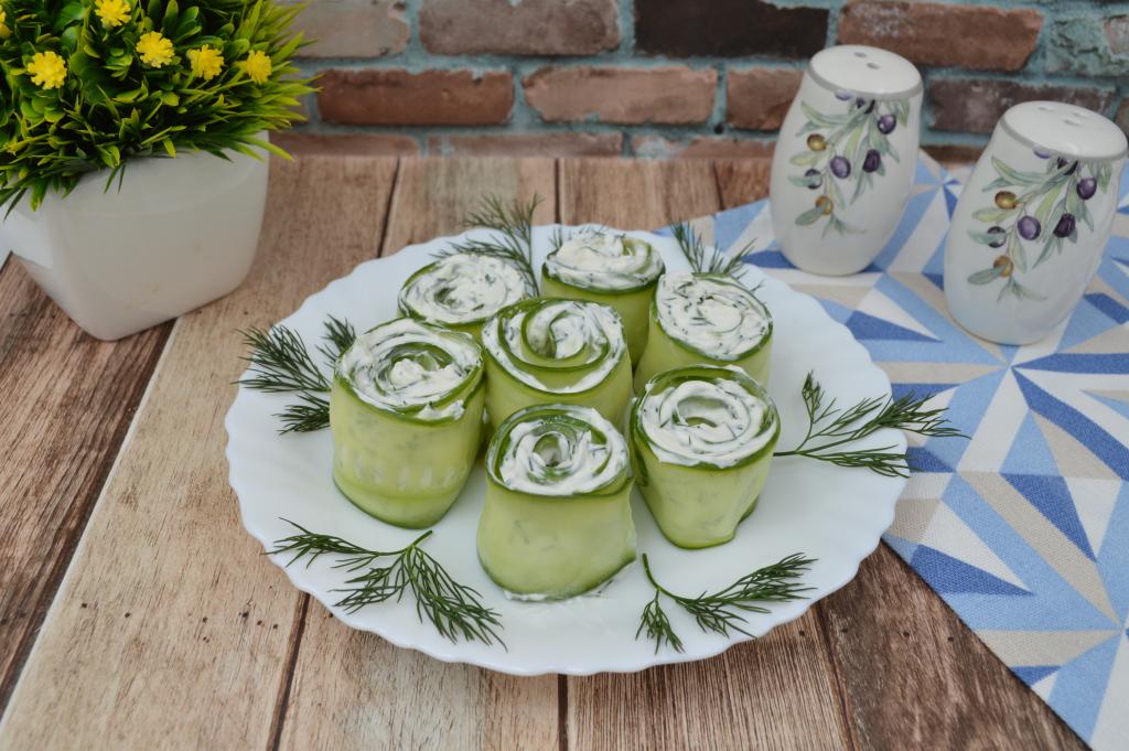 Если вы хотите разнообразить праздничный или повседневный стол и порадовать себя и своих близких вкусной, красивой и недорогой закуской, тогда настоятельно рекомендую обратить внимание на рулетики из огурцов с творожным сыром. Готовятся они без добавления масла и майонеза, а значит точно не навредят фигуре. Формируются такие рулеты очень просто, они хорошо держат форму (их не надо скреплять шпажками или зубочистками), получаются аппетитными, вкусными и съедаются с огромным удовольствием!