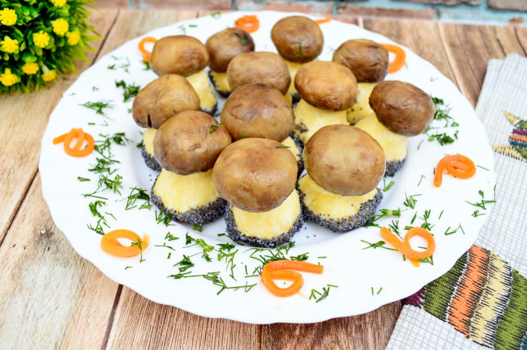 Сочетание грибов и картошки - беспроигрышное. Предлагаю, используя маринованные шампиньоны, отварной картофель, сыр и яйца, приготовить аппетитную, достаточно сытную и вкусную закуску "Грибная поляна". Такая закуска, как говорится, "на один укус", неизменно пользуется популярностью на любом праздничном застолье. Формировать такие грибочки - одно удовольствие. Всем советую этот простой рецепт вкусной закуски!