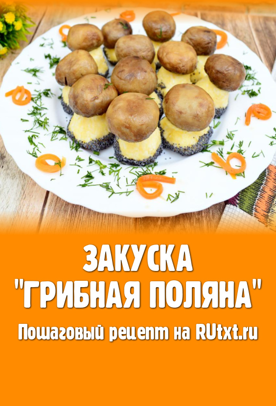 Вот такая аппетитная закуска "Грибная поляна" получилась. Я украсила полянку рубленным укропом. "Грибочки" очень вкусные, сочные. Такая закуска отлично смотрится на любом праздничном застолье!