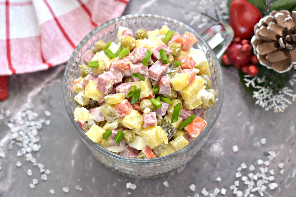Для праздничного застолья я иногда готовлю салат «Столичный». Вариантов этого популярного салата немало. В этот раз приготовила салат «Столичный» с копчёной колбасой и маринованными огурцами. Блюдо получилось очень вкусным, пикантным, сытным и аппетитным. Такой салат неизменно съедается достаточно быстро. Из указанного количества ингредиентов получается 2-3 порции.