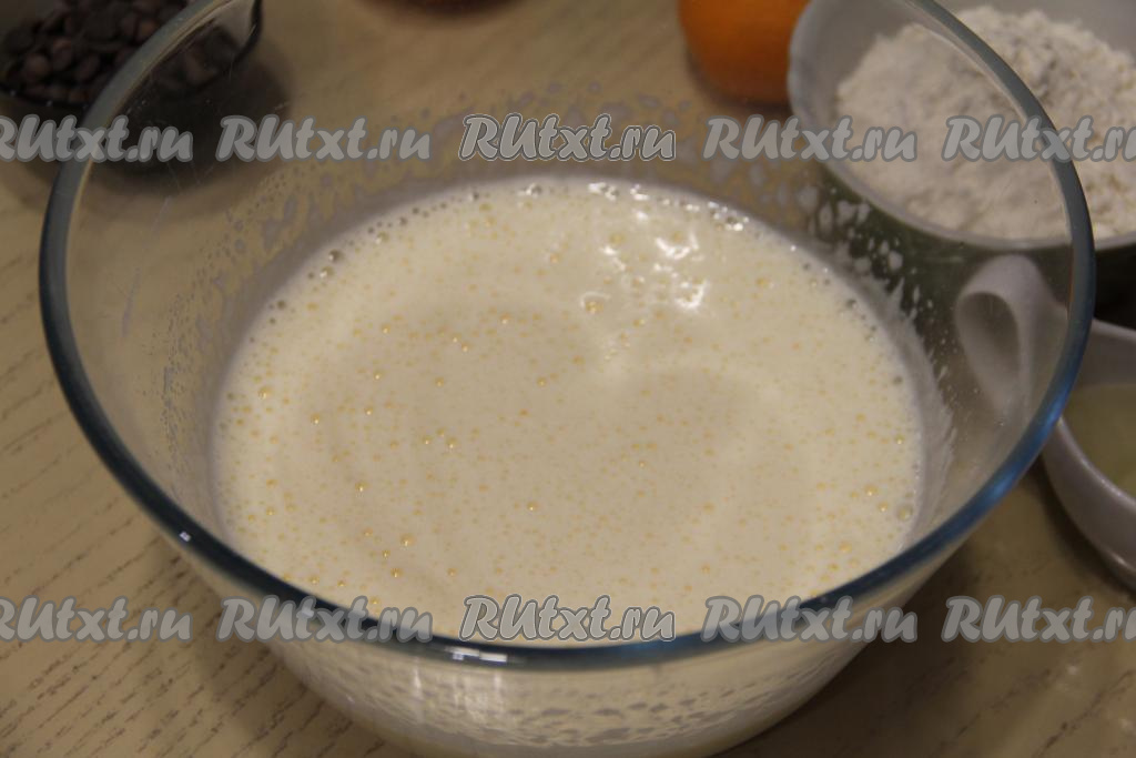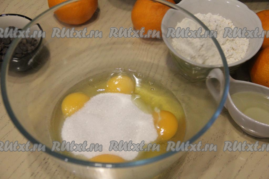 Миксером взбить яйца с сахаром в течение 5-7 минут (до пышного состояния).