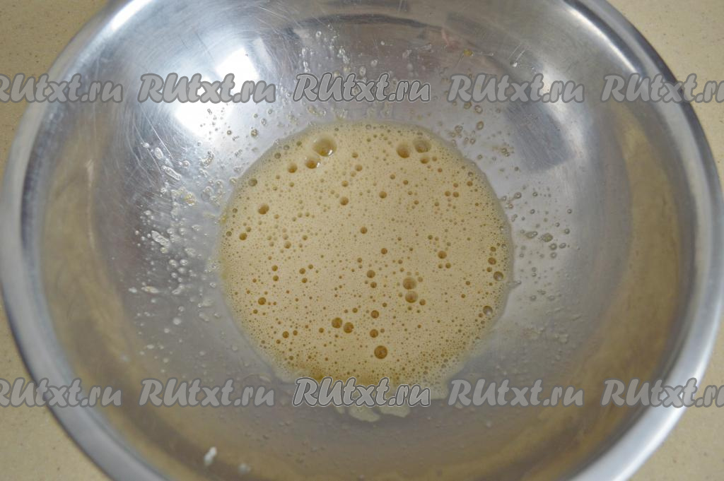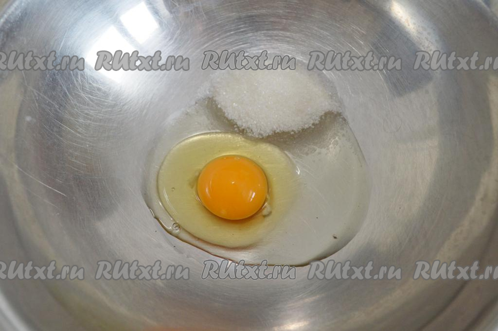 Интенсивно перемешивая венчиком, взбить яйцо с сахаром до побеления (взбиваем примерно 1-2 минуты).
