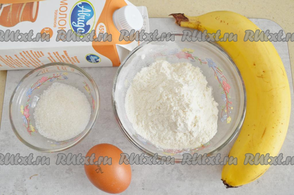 Подготовить продукты. Банан лучше выбирать спелый, сладкий, но достаточно плотный, хорошо держащий форму.