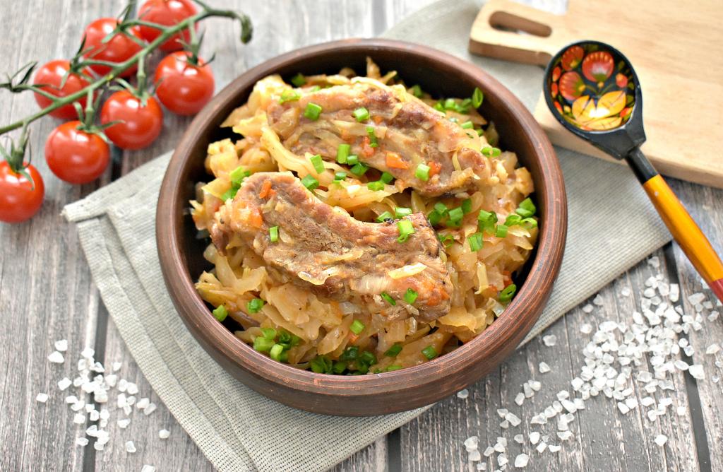 Я часто тушу капусту вместе с мясом, курицей, фаршем или грибами. Чаще всего готовлю в глубокой сковороде или казане. А в этот раз решила потушить капусту вместе со свиными рёбрышками в мультиварке. Блюдо получилось аппетитным, сытным. Капуста стала мягкой, а мясо - сочным. Это вкусное блюдо можно подать к столу в качестве основного, а можно дополнить отварным картофелем.