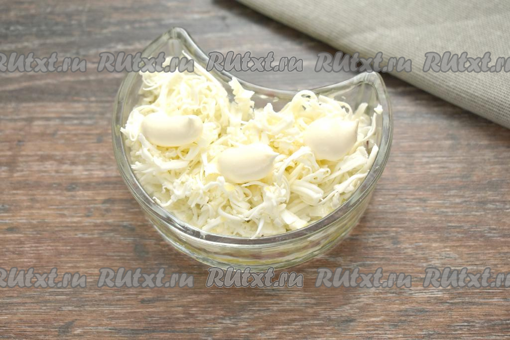 Плавленый сыр натираем на крупной тёрке (для того чтобы сыр хорошо натирался, его можно предварительно минут на 10 поместить в морозилку), выкладываем поверх слоя лука, смазываем майонезом.