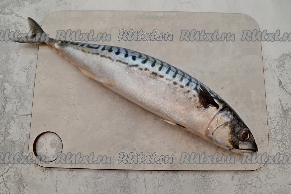 Удалить у скумбрии хвост, голову, плавники, разрезать по брюшку, вынуть внутренности. Хорошо промыть, особенно внутри, убирая из брюшка чёрную плёнку.