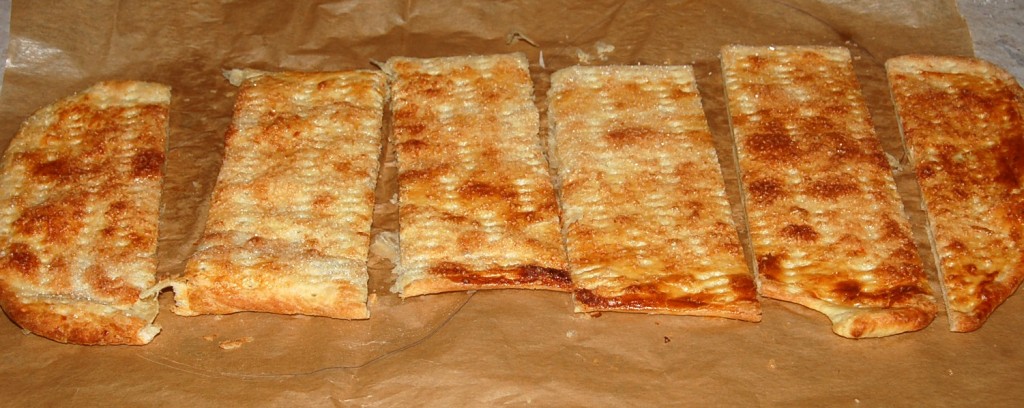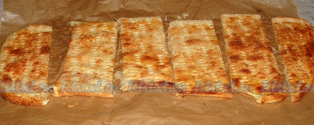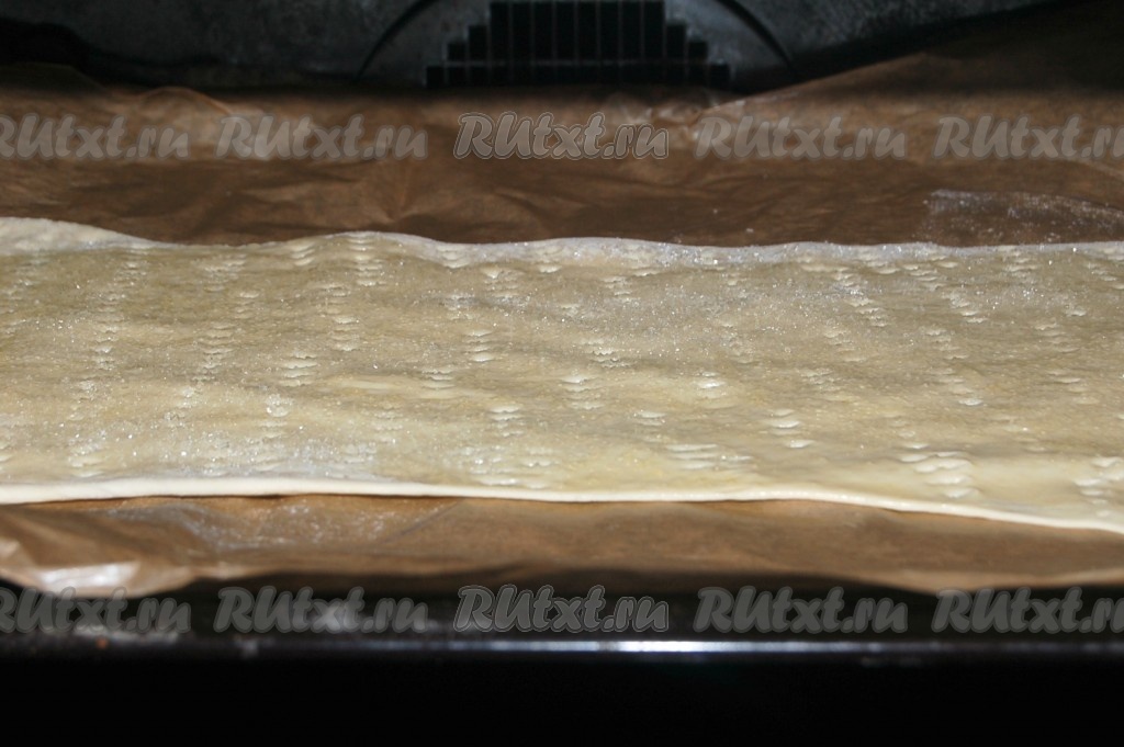 Отправить сахарные полоски в заранее нагретую до 180 градусов духовку на 10 минут (до подрумянивания).
