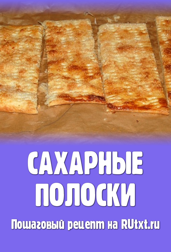 Из слоеного теста можно приготовить огромное количество самой разнообразной выпечки. Зачастую бывает и так, что часть слоеного теста остается неиспользованной, и тогда встает вопрос: "Что с ним делать?". В таких случаях очень удобны сахарные полоски. Они пекутся быстро, не требуют никаких дополнительных начинок.