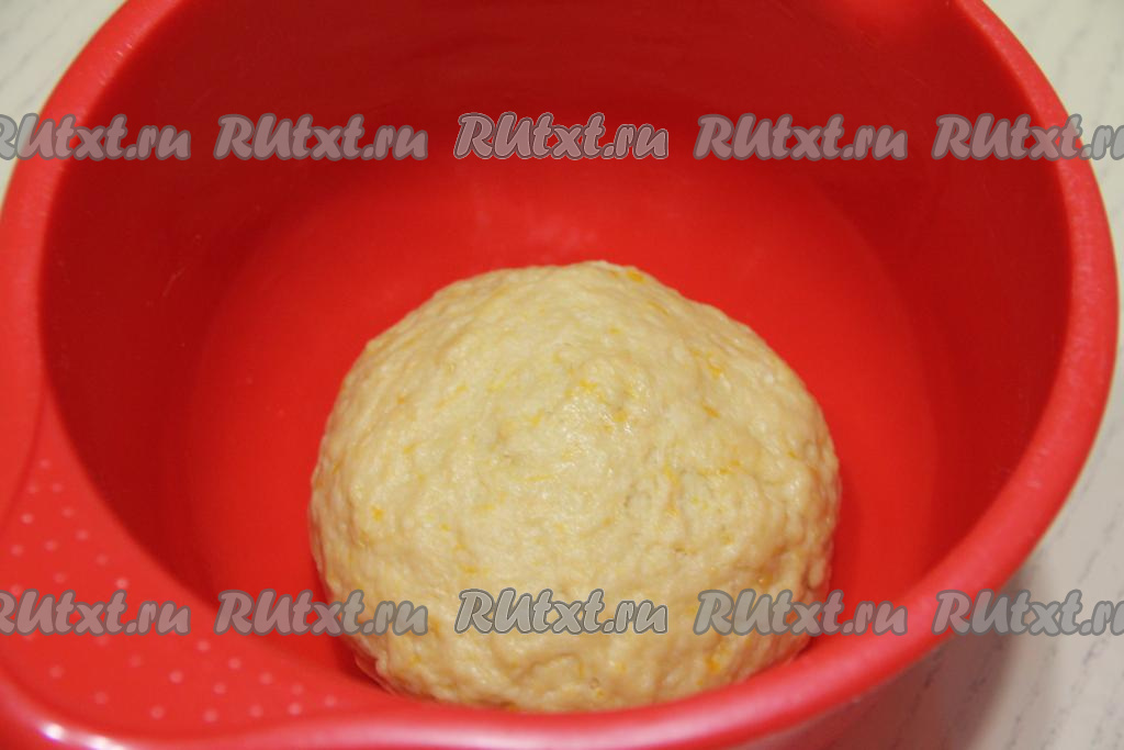 Добавляя муку, учитывайте, что замешиваемое тесто должно получиться мягким и нежным, практически не липнущим к рукам. Оставить тесто в миске, накрыв полотенцем, и убрать на 1 час в тёплое место (до поднятия и увеличения в объёме в несколько раз).