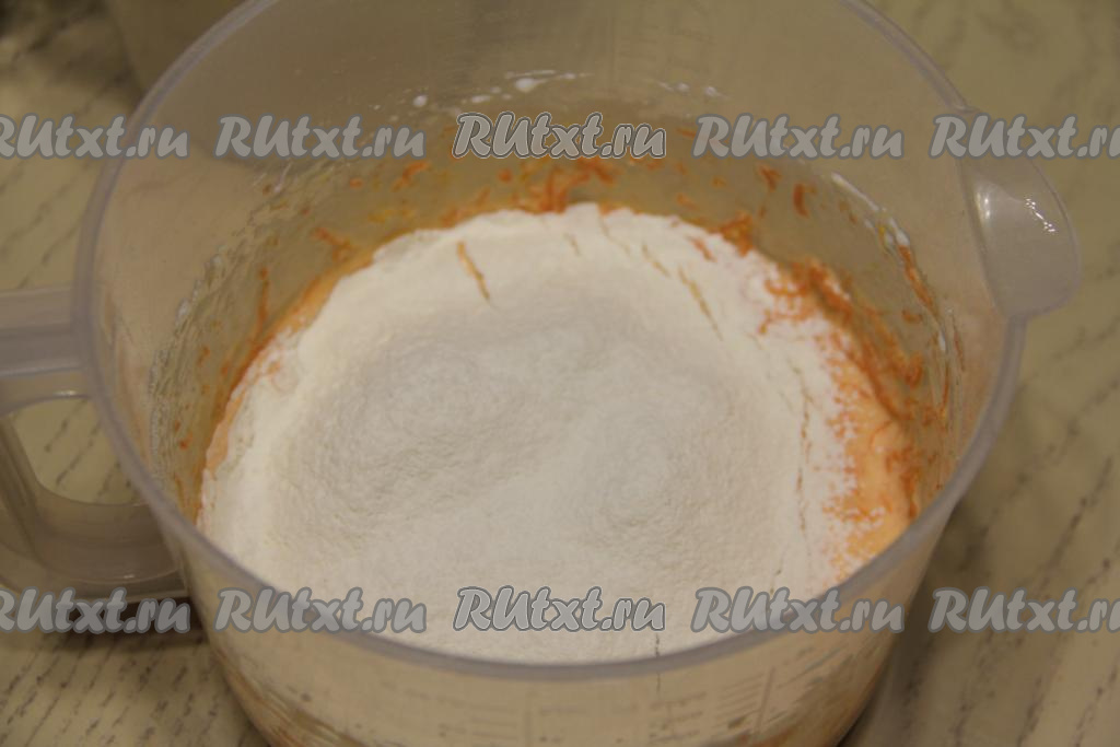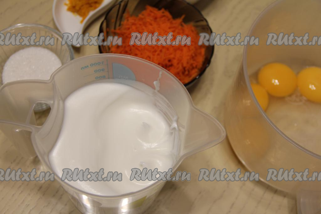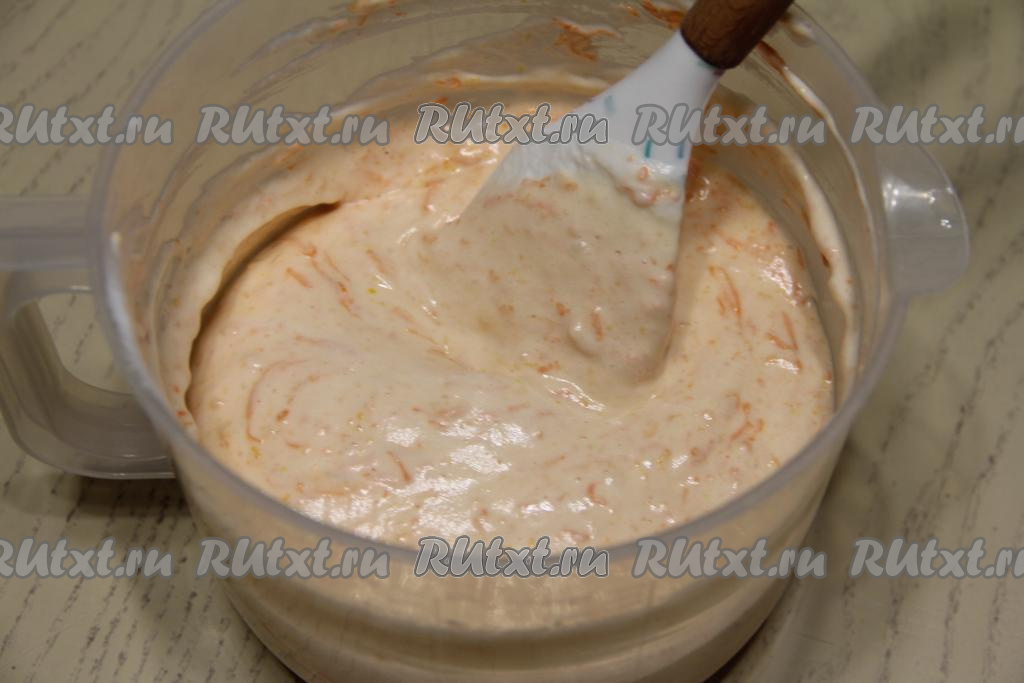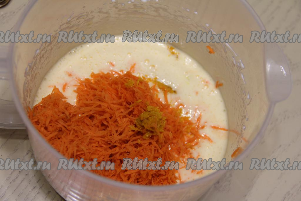 Добавить в желтковую массу натёртую морковь и цедру апельсина (или лимона).