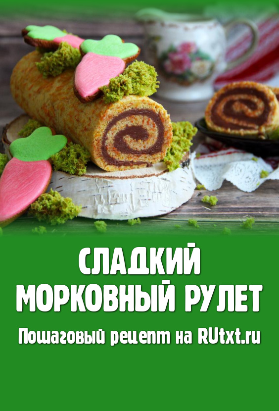 Предлагаю рецепт нежного, очень-очень вкусного и красивого сладкого морковного рулета. Бисквитное тесто, замешанное с добавлением натёртой моркови, получается очень эластичным, не трескается во время формирования рулета. В роли начинки я использовала крем из варёной сгущёнки и сливочного масла, он отлично дополнил морковный рулет и сделал десерт восхитительно вкусным. Готовый рулет можно украсить по-разному, например, слегка присыпать сахарной пудрой или покрыть растопленным шоколадом. Я украсила его бисквитным мхом и пряниками в виде морковок. Всем советую приготовить к повседневному или праздничному чаепитию сладкий морковный рулет!