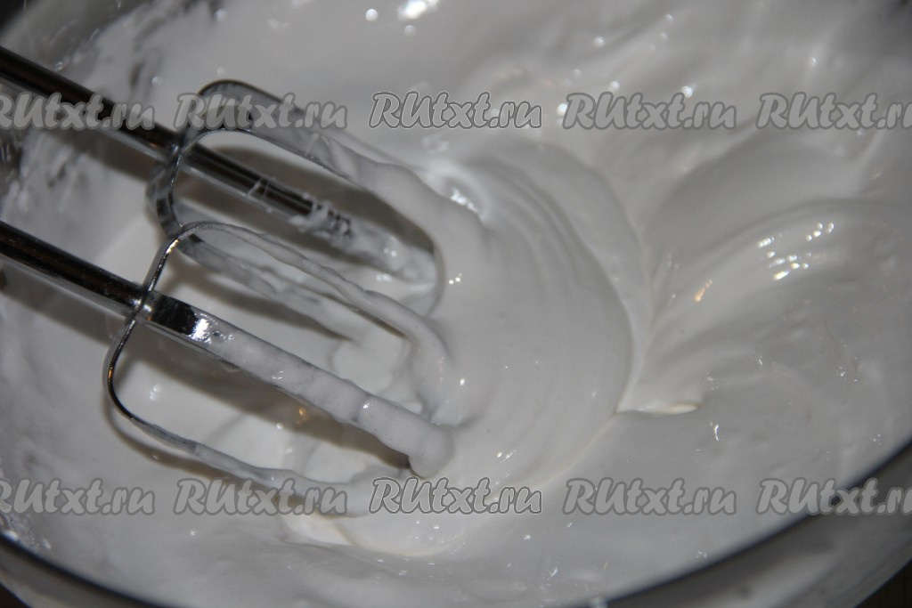 Приготовить глазурь, для этого хорошо охлаждённый яичный белок нужно взбить миксером в пену, затем начать небольшими порциями добавлять 170 грамм сахарной пудры, не прекращая взбивать на средней скорости миксера. Взбивать минуты 3-4, затем добавить 1 чайную ложку лимонного сока. Взбивать ещё 2 минуты. Глазурь должна получиться не жидкой, тягучей. Переложить глазурь в кулинарный мешок.