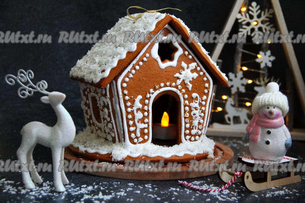 На рождественский или новогодний стол можно приготовить медовый пряничный домик. Я трафарет взяла в Интернете и просто вырезала его из бумаги. Тесто для пряников замешивается руками, ему обязательно нужно дать отдохнуть в холодильнике минимум 4-5 часов (а лучше оставить в холодильнике на ночь). Сразу скажу, что домик готовится в несколько этапов: сначала замешивается тесто и выпекаются детали домика, после этого детали украшаются глазурью, которой нужно застыть в течение нескольких часов, а уже затем нужно собрать домик, склеивая детали сахарной глазурью. Из данного количества теста у меня получилось 2 домика и 8-10 пряников среднего размера.