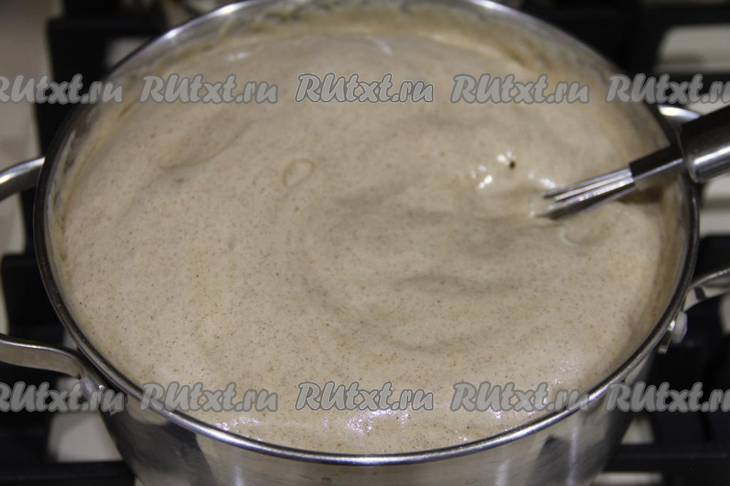 Перемешать массу венчиком и поставить на небольшой огонь. Постоянно помешивая, довести массу до кипения.
