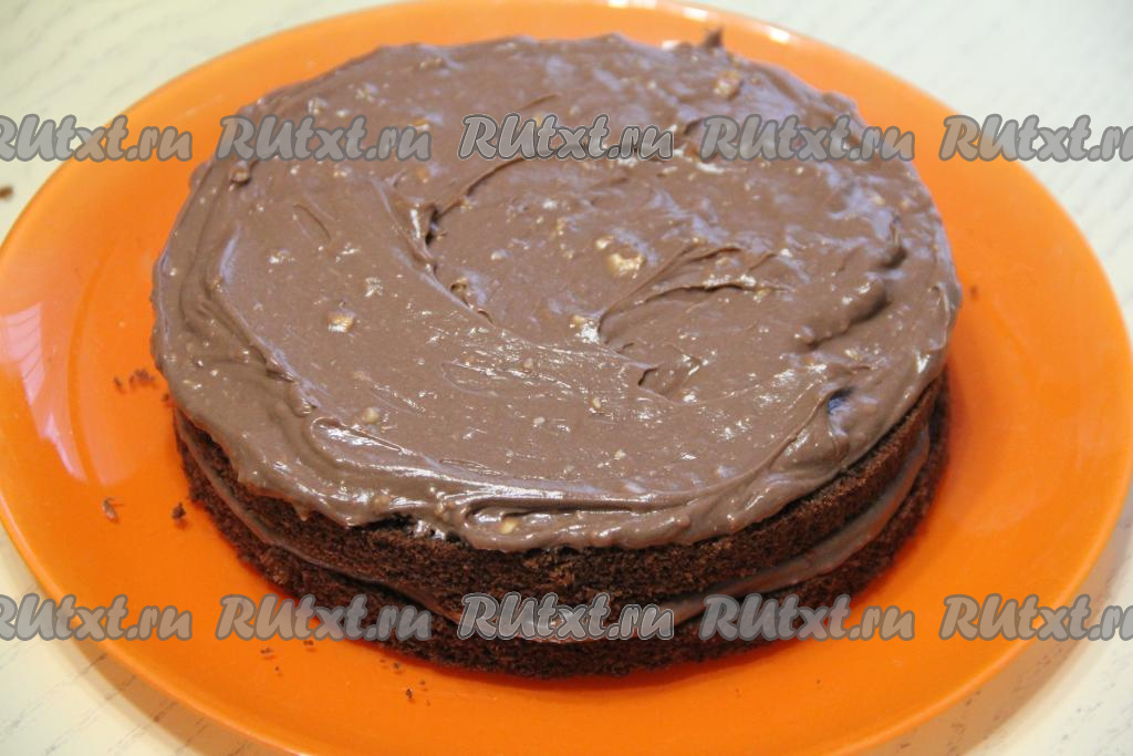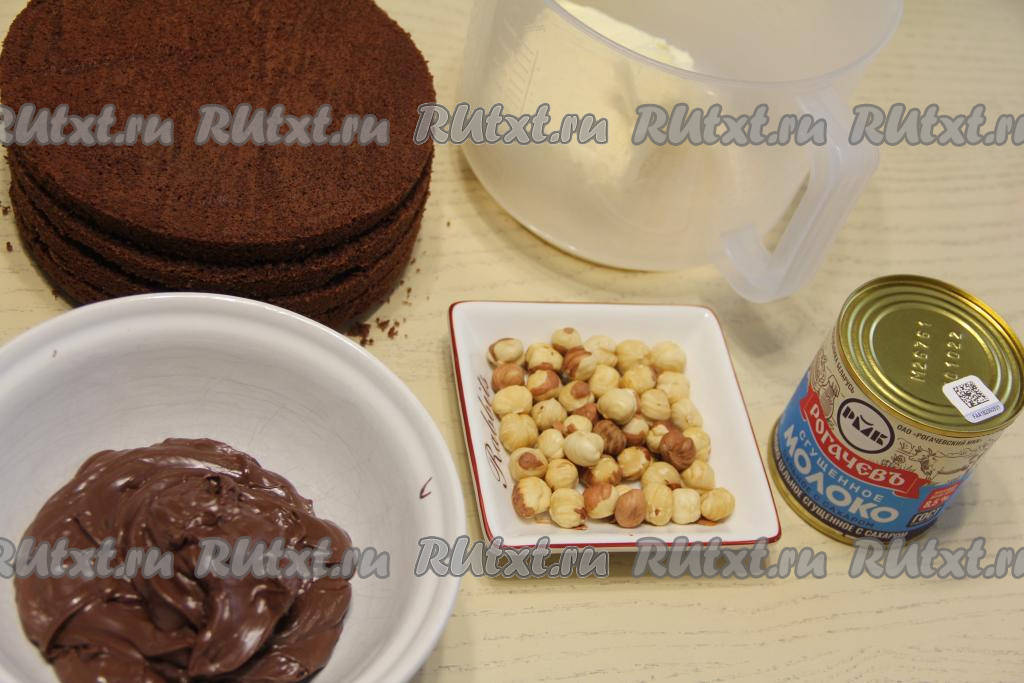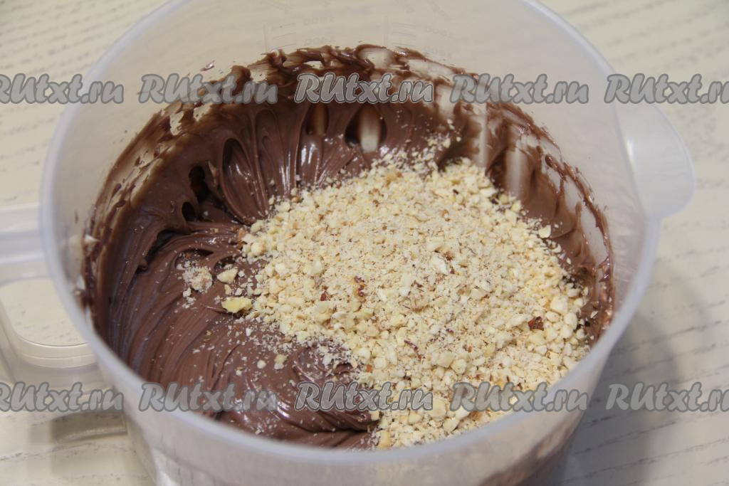 Фундук измельчить в крошку и добавить в крем, перемешать.