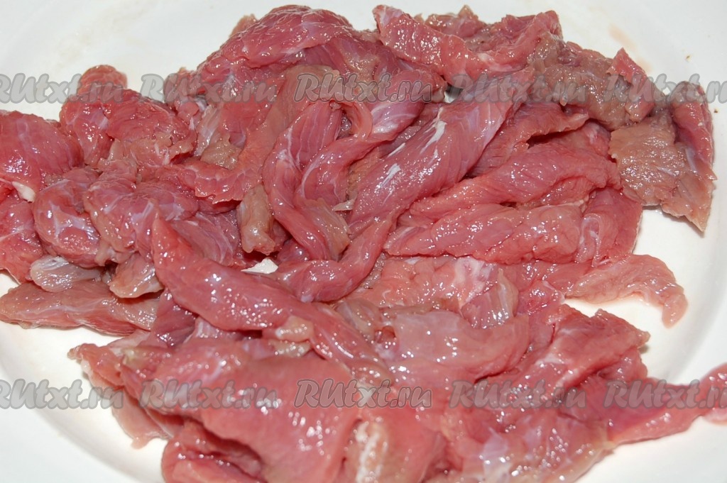 На сковороду выложить топленое масло, на нем обжарить мясо с луком, тушить 30 минут.