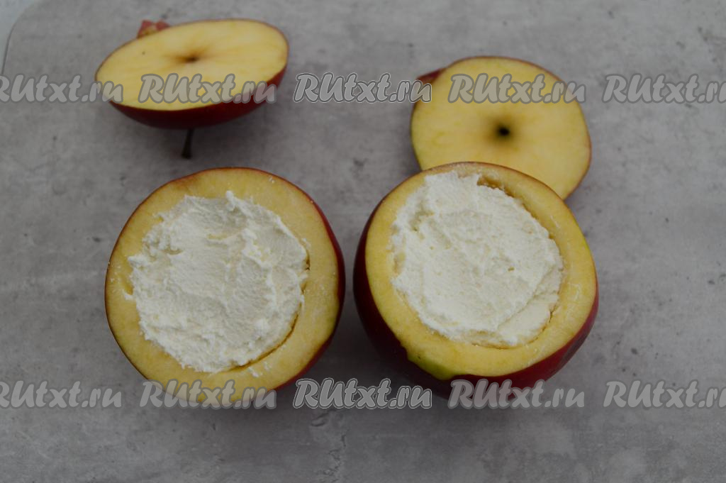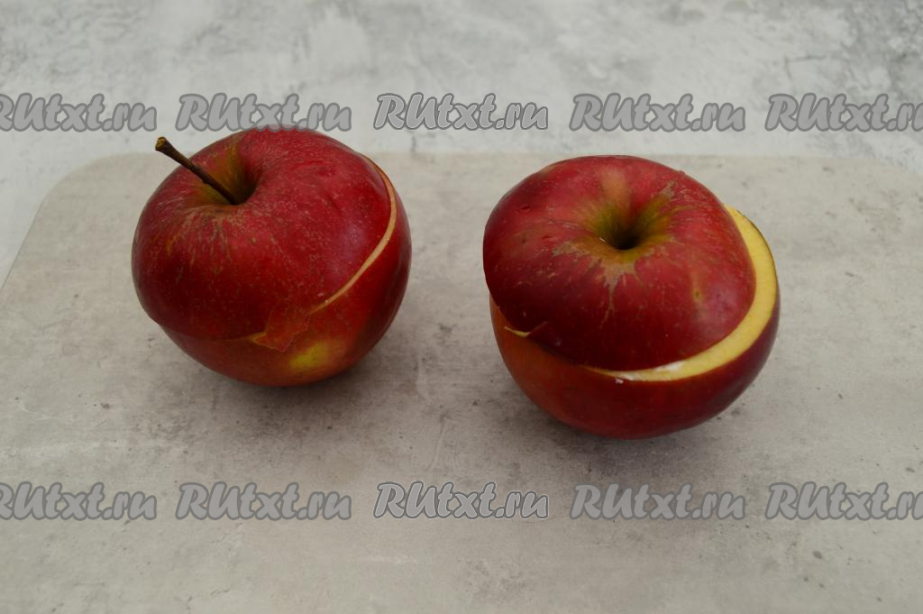 У яблок срезать часть ближе к "ножке". Получится крышечка и само яблоко.