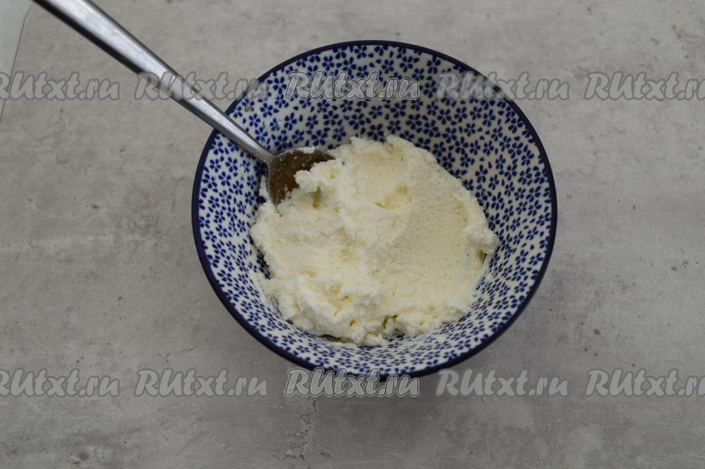 Я добавила в творог 1 чайную ложку сахара, творожная масса получилась в меру сладкой.