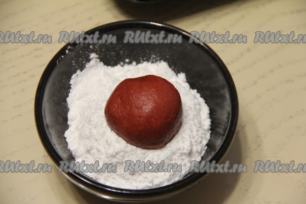 Разделить тесто для печенья на 12 равных частей. Из каждой части теста сформировать шарик. Сформированные шарики обвалять со всех сторон в сахарной пудре.