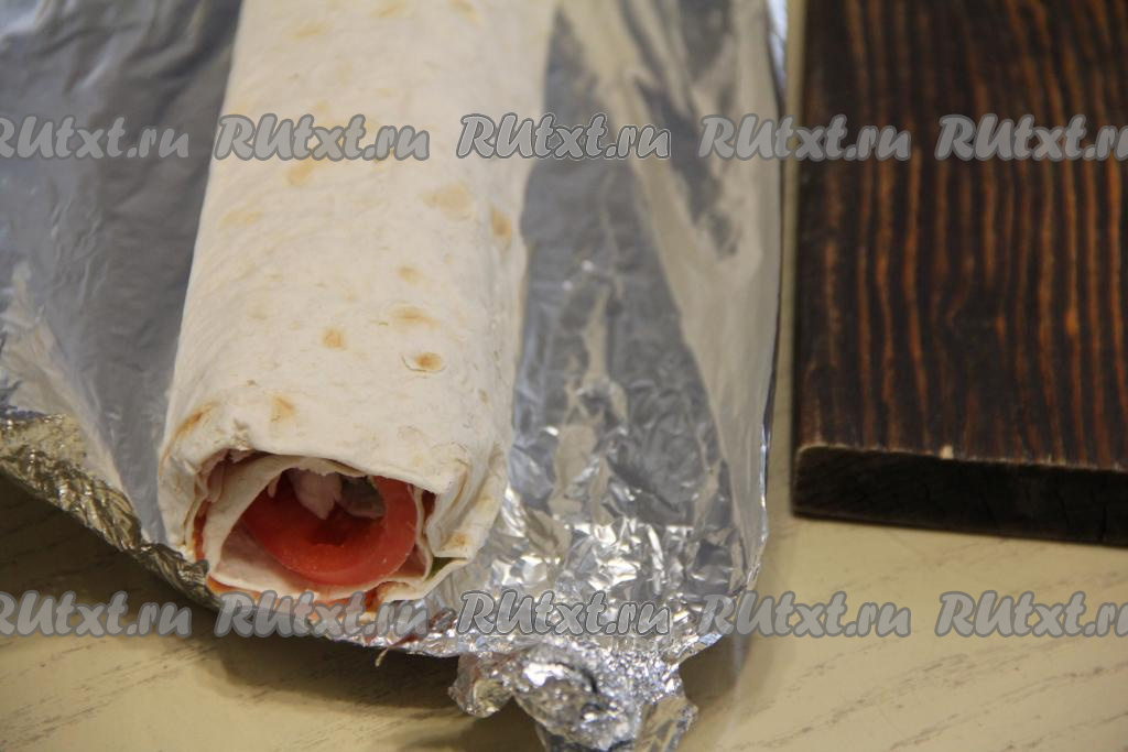 Лаваш с начинкой, начиная со стороны с салатом, свернуть в плотный рулет. Я края лаваша не подгибала.