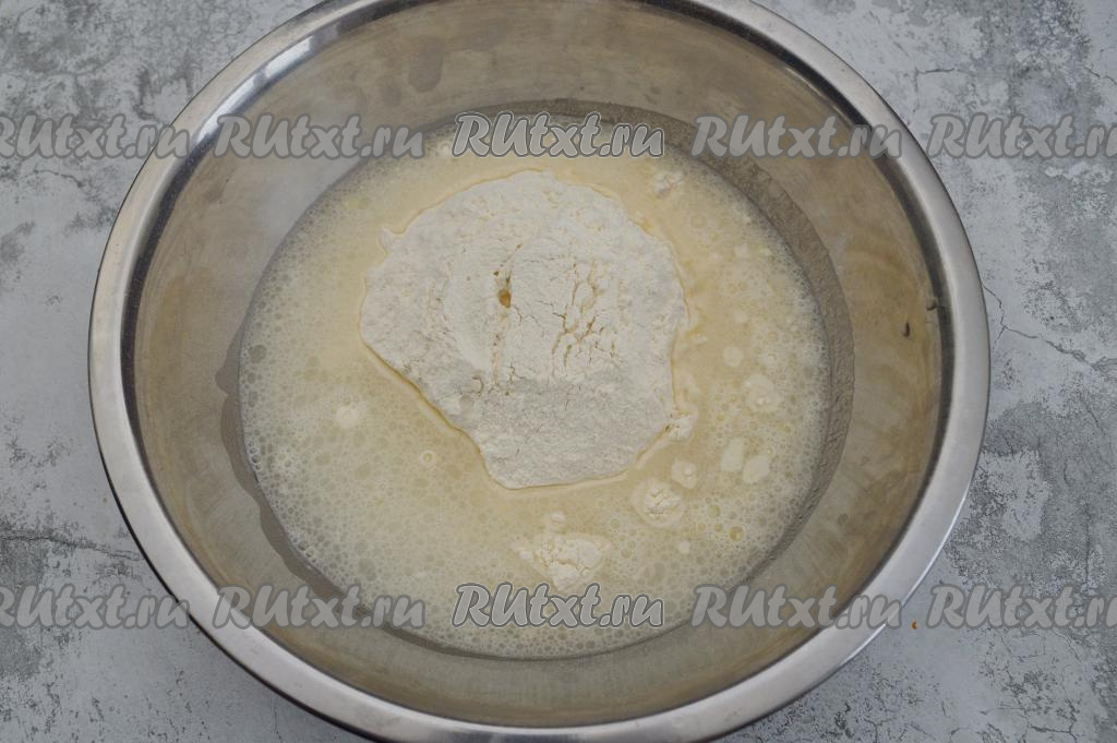Первым делом замесим тесто для вертут. Для этого в миске соединяем тёплую воду (вода должна быть достаточно тёплой, но не горячей) с солью и растительным маслом, перемешиваем до растворения кристаллов соли. 500 грамм пшеничной муки просеиваем в объёмную миску, сюда же вливаем смесь воды и масла.