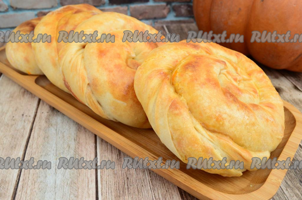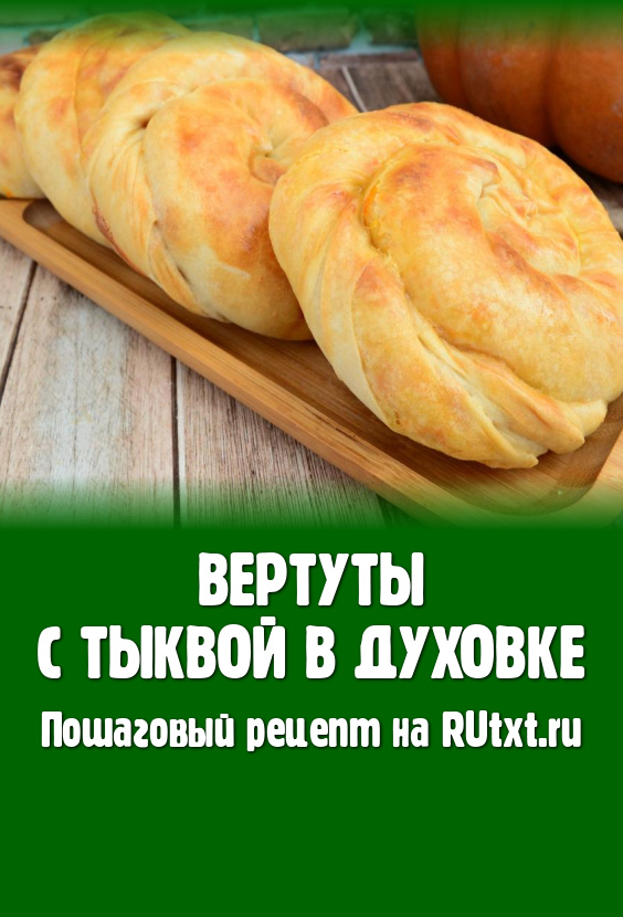 Предлагаю из вполне доступного набора продуктов испечь в духовке аппетитные, сытные, вкусные вертуты со сладкой начинкой из тыквы. Вообще, вертута относится к молдавской кухне, является ничем иным как рулетом из тонко раскатанного пресного теста, который в процессе формирования несколько раз перекручивается. Вертуты получаются сочными внутри и аппетитными снаружи. Из указанного количества теста и начинки у меня вышло 4 достаточно больших вертуты (диаметром 13-14 сантиметров).