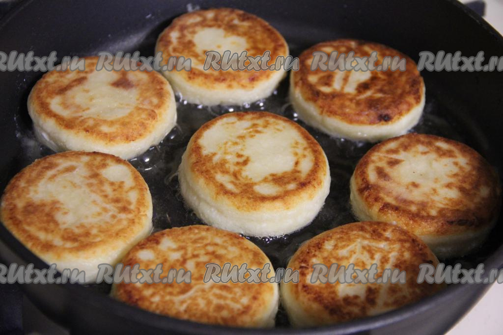 Жарить сырники с двух сторон на среднем огне до золотистого цвета (примерно по 2-3 минуты с каждой стороны). Главное, чтобы сырники покрылись золотистой корочкой, а доводить до готовности будем их в духовке.