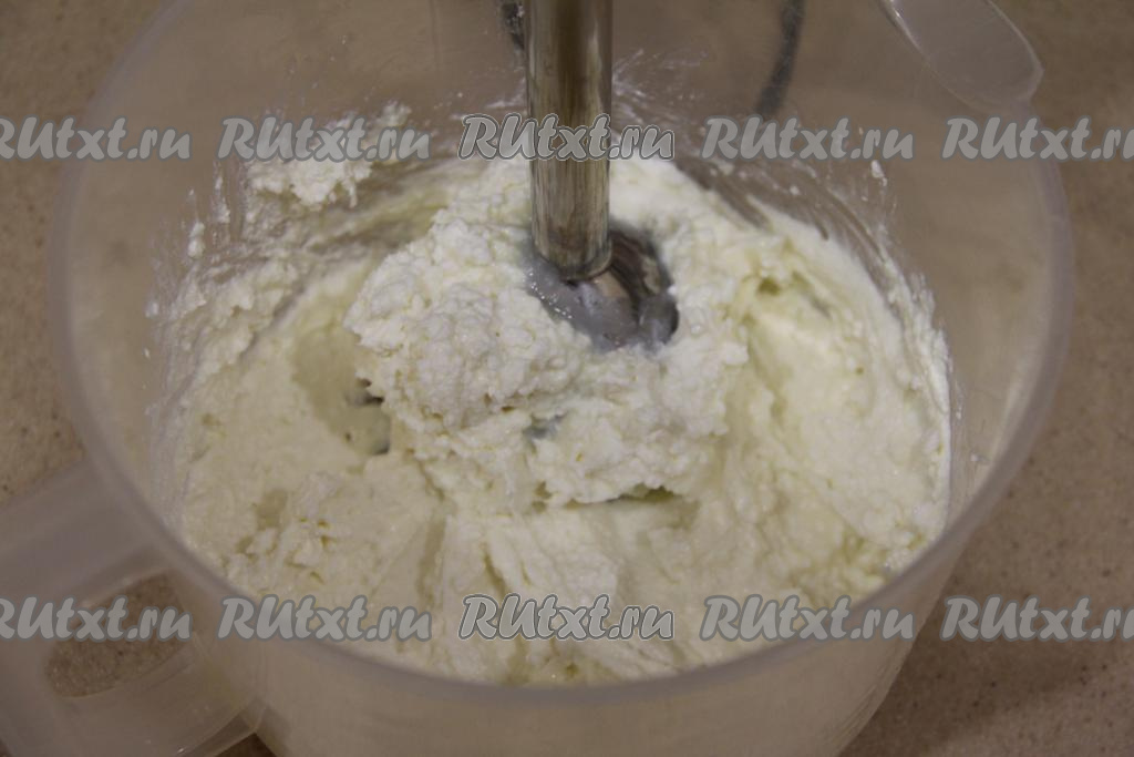 Для приготовления крема нужно сливочное масло, размягчившееся при комнатной температуре, соединить с творогом и пробить погружным блендером до однородного состояния.