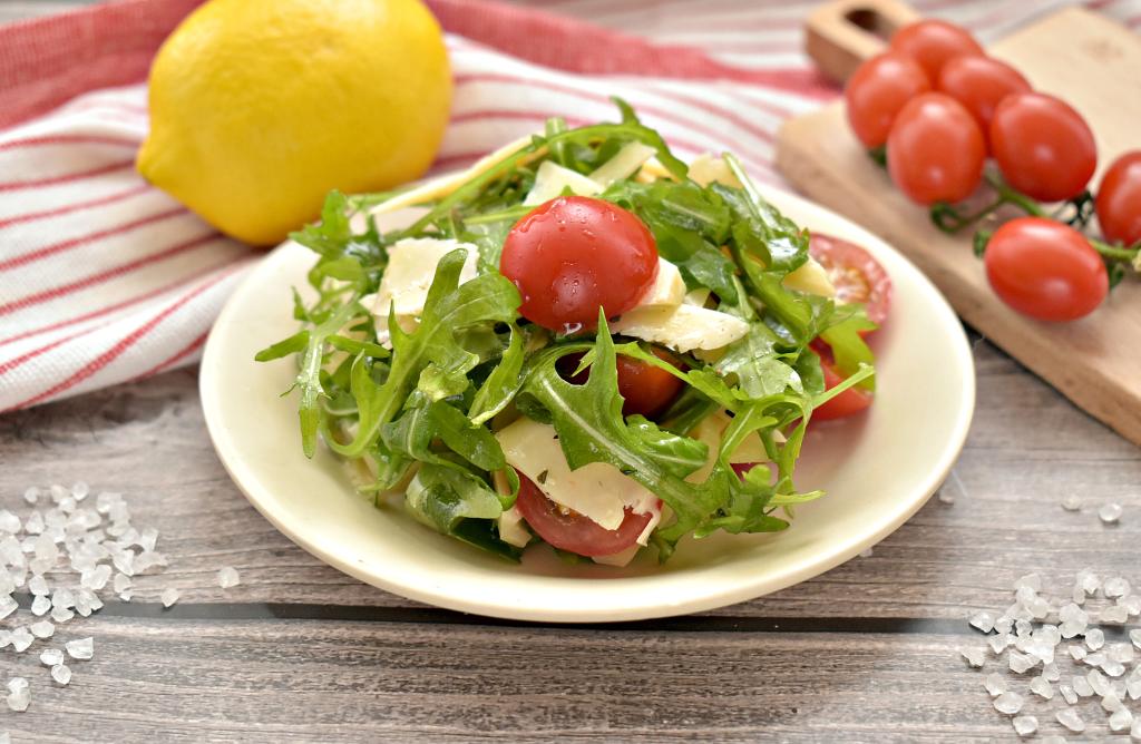 Предлагаю вам приготовить вкусный, аппетитный, достаточно сочный салат с рукколой, пармезаном и помидорами черри. Благодаря рукколе, блюдо имеет пикантный орехово-горчичный вкус. Такой салат станет отличным дополнением к мясу. Это блюдо можно предложить к романтическому ужину.