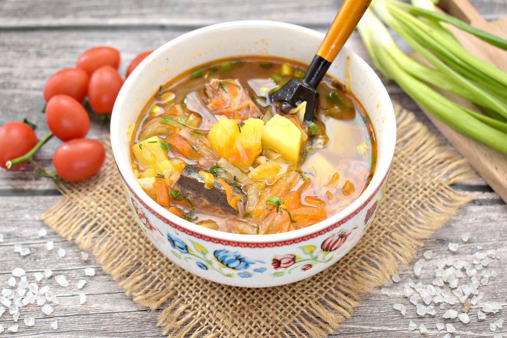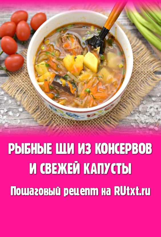 Щи - популярное первое блюдо. Готовят его по-разному. В этот раз предлагаю сварить щи из свежей капусты с добавлением рыбных консервов. Для этого блюда выбирайте те консервы, которые вам больше нравятся (для меня идеальна скумбрия). Такие рыбные щи готовятся достаточно быстро, а получаются ароматными, очень сытными и вкусными.