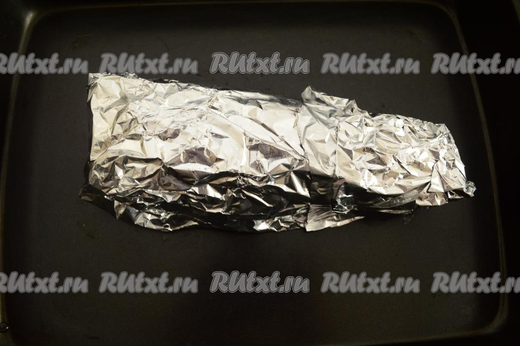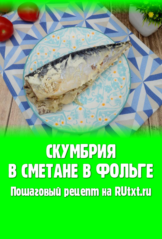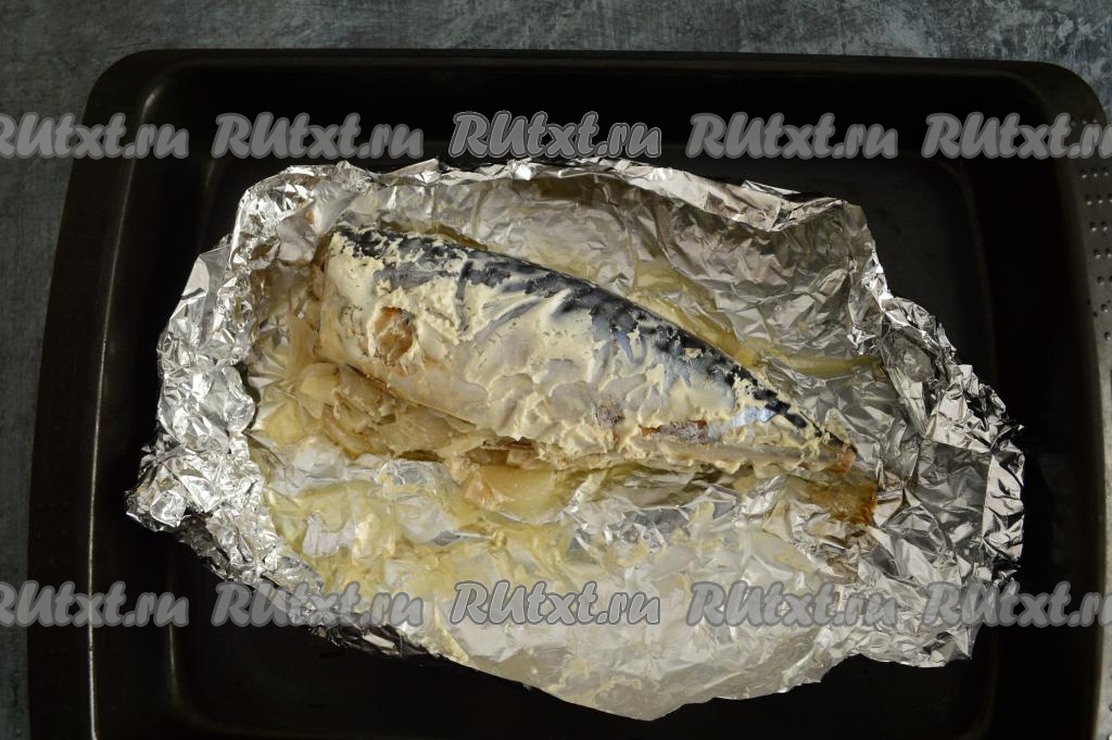 Завернуть скумбрию в сметане в фольгу и отправить запекаться в разогретую до 180 градусов духовку на 40 минут.