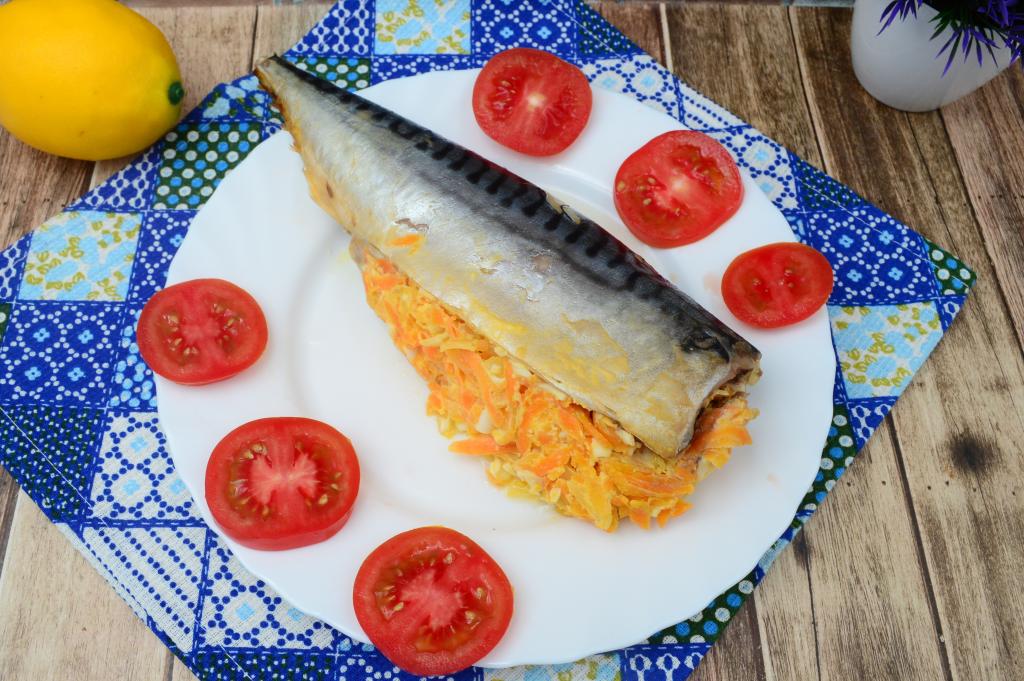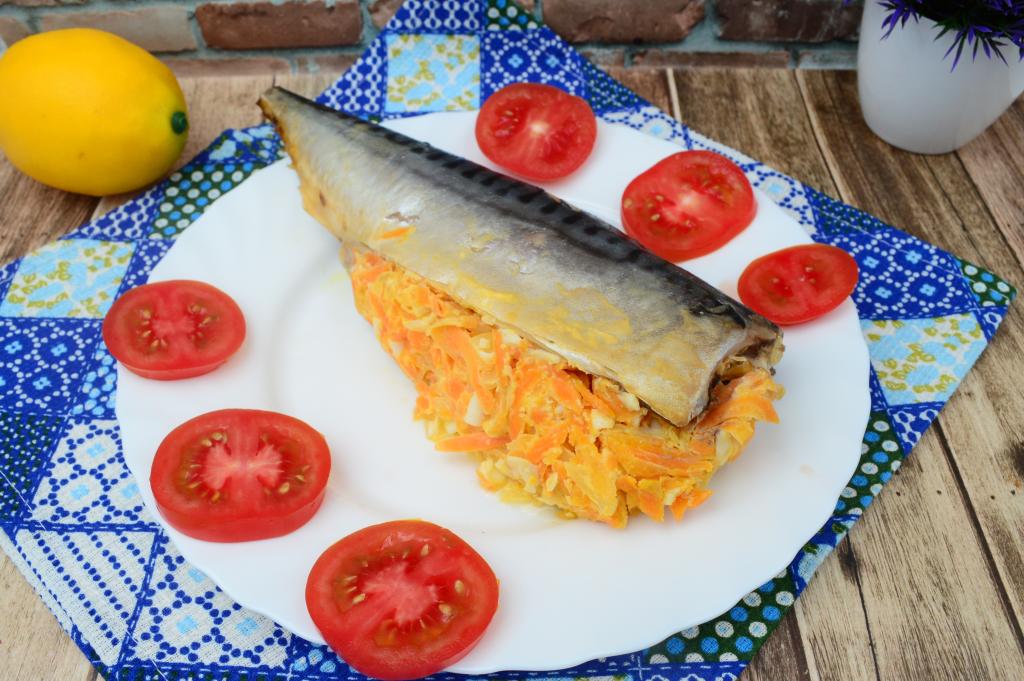 Если вы хотите приготовить вкусное, сытное, аппетитное блюдо, тогда запеките фаршированную скумбрию в фольге в духовке. Рыбка получается очень нежной и сочной. В качестве начинки для скумбрии будем использовать обжаренные морковку с луком и варёное яйцо. Такая начинка идеально подходит для фарширования рыбы. Это аппетитное блюдо лучше подать в тёплом или горячем виде. А яично-овощная начинка, с которой запекалась рыба, станет замечательным гарниром к скумбрии.